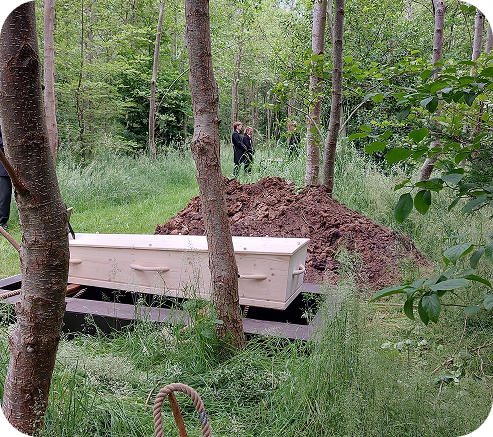 Op of bij het graf kan een zwerfkei, boomschijf of inheemse boom dienen als grafaanduiding. Bij de plaatsing van grafaanduidingen en gedenktekens wordt enkel gebruikgemaakt van materialen die van nature in het gebied voorkomen. Daarom worden deze uitsluitend geleverd en geplaatst door de beheerder.